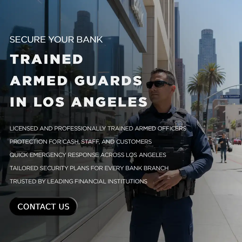 - Armed security for banks in Los Angeles helps deter robbery and criminal activity.